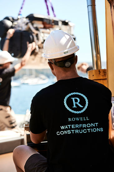 Rowell Waterfront Constructions recently assisted its sister company "Rowell Marine Shipwrights" and Wakeford Marine Services with the removal and installation of two refurbished Volvo engines, using our 6-tonne crane. This was part of a larger refit carried out by "Rowell Marine Shipwrights".